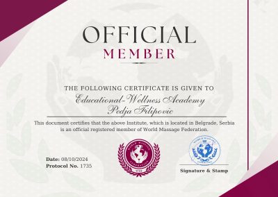 Zvanični član najprestižnije organizacije masera World Massage Assotiation
